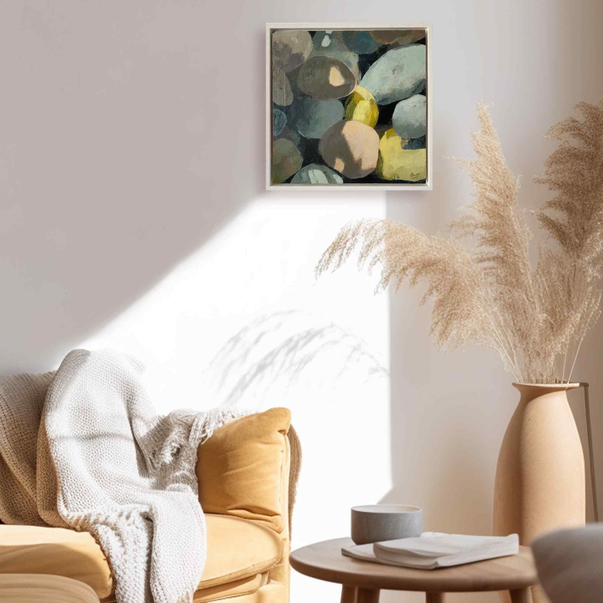 This painting, inspired by a photo taken on our patio during a summer morning coffee, captures the essence of calm and tranquillity. The vibrant colours and soft shadows on the pebbles evoke a sense of stillness, inviting you to pause and reflect. Every detail is thoughtfully designed to create a serene, mindful moment, reminding us to slow down and appreciate life's simple pleasures.